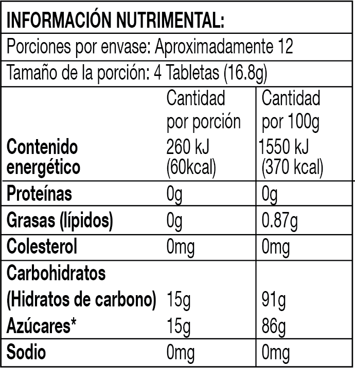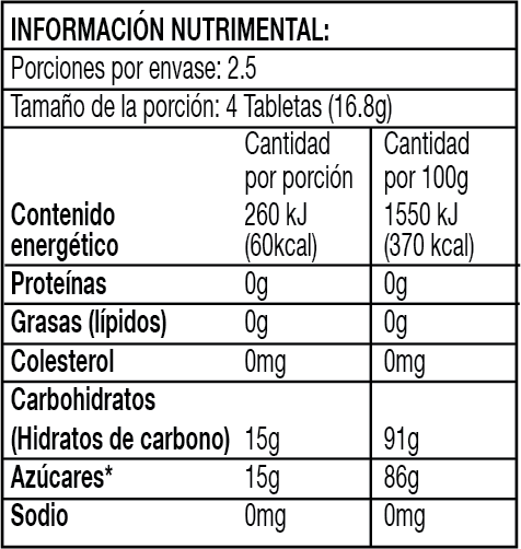 Las tabletas TRUEplus contienen carbohidratos (hidratos de carbono) que ayudan a elevar el nivel bajo de glucosa en la sangre y a aumentar la energía.